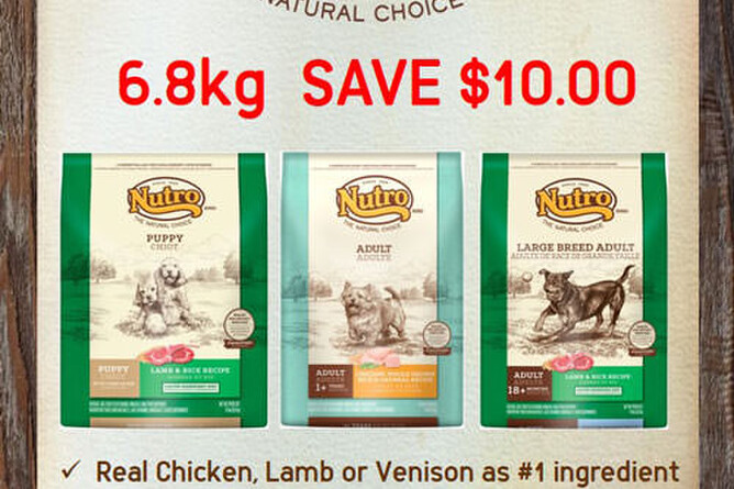 Using real meat, Nutro provides natural and quality food options for your pup! This month, when you purchase a 6.8kg Nutro bag of dog food you save $10!