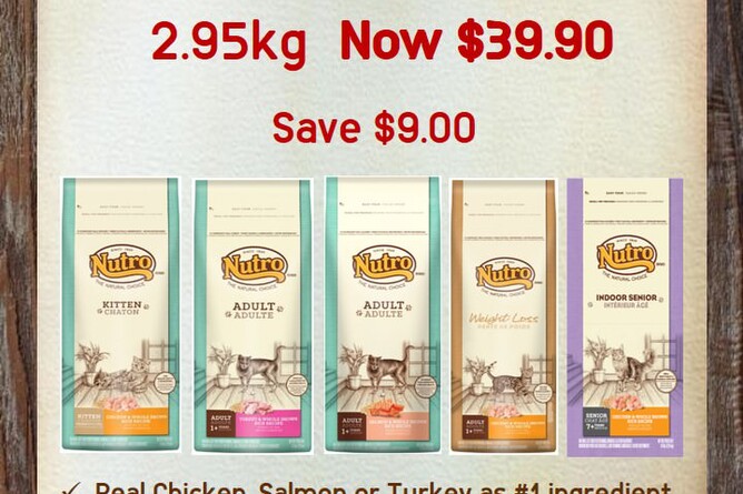 And if you purchase a 2.95 kg of cat food - normally $39.90 - you save $9! Talk about savings!