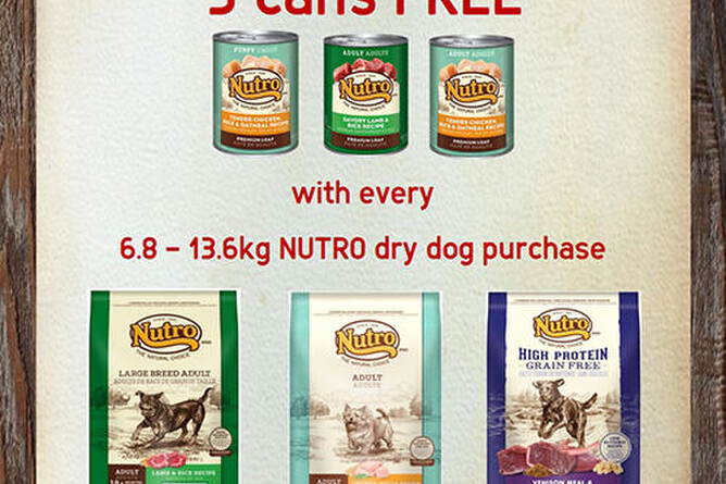Nutro -- 3 cans free with every 6.8 - 13.6 Nutro dry dog purchase
