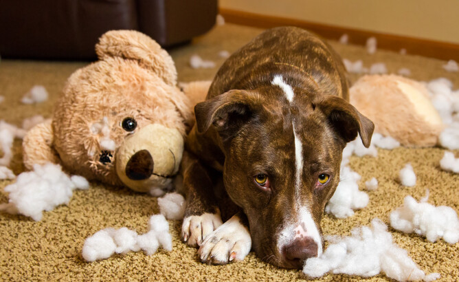 The trick here is to focus on the behaviour: training him not to shred those soft those when he’s home alone.