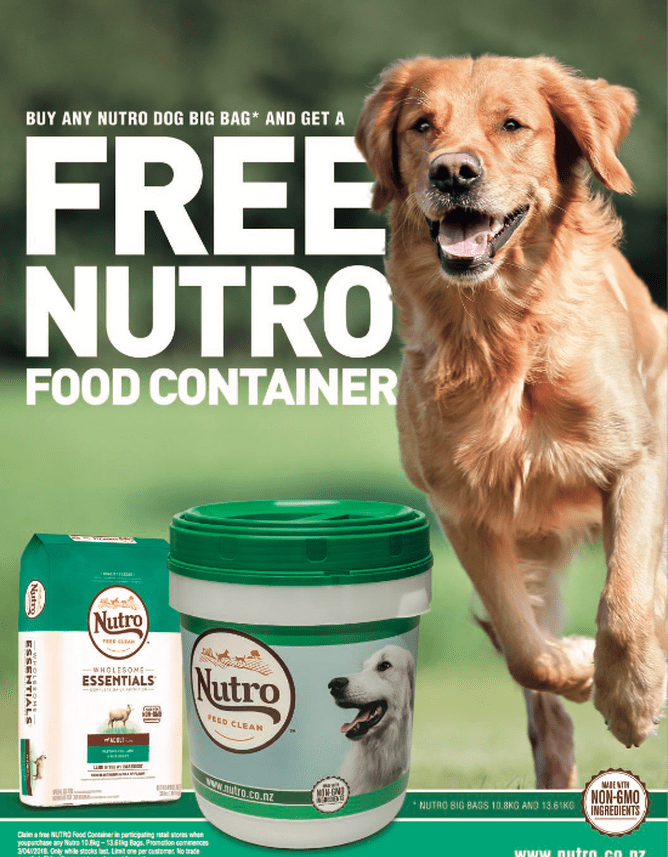 Plus, if you buy any big bag of Nutro feed, you’ll get a free Nutro food container!