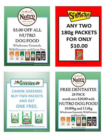 This month, we have a whopping $5 off all Nutro Dog Food and a smashing special on Schmackos treats – two 180g packets for just $10!