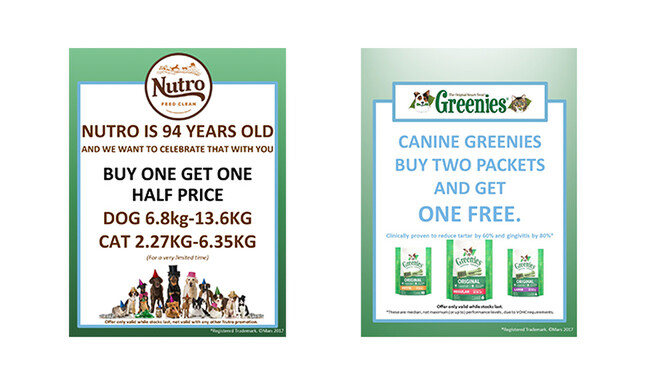 You can also buy one get one HALF PRICE on our homegrown natural pet food Nutro — valid while stocks last on all 6.8 - 13.6kg bags.